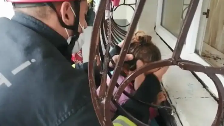 Kocaeli'nin İzmit ilçesinde oyun oynarken başı pencere demirine sıkışan kız çocuğunu itfaiye ekibi kurtardı.
