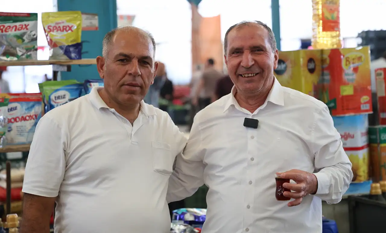 Pazar tezgâhlarını tek tek gezen Başkan Aydın, esnafa hayırlı işler dileyip sohbet etti. Alışveriş yapan hemşehrilerinin hal ve hatırını da soran Aydın, samimi anlara tanıklık etti.