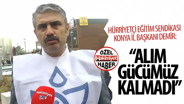 Hürriyetçi Eğitim Sendikası Konya İl Başkanlığı, memur ve emekli memurların, sorunlarına yönelik basın açıklamasında bulundu. Yapılan basın açıklamasında konuşan Hürriyetçi Eğitim Sendikası Konya İl Başkan Semih Demir, 'Bizler memurlar ve emekli memurlar olarak ülkedeki yüksek enflasyon karşısında ezilmekteyiz. Her geçen gün de fakirleşiyoruz.' dedi.