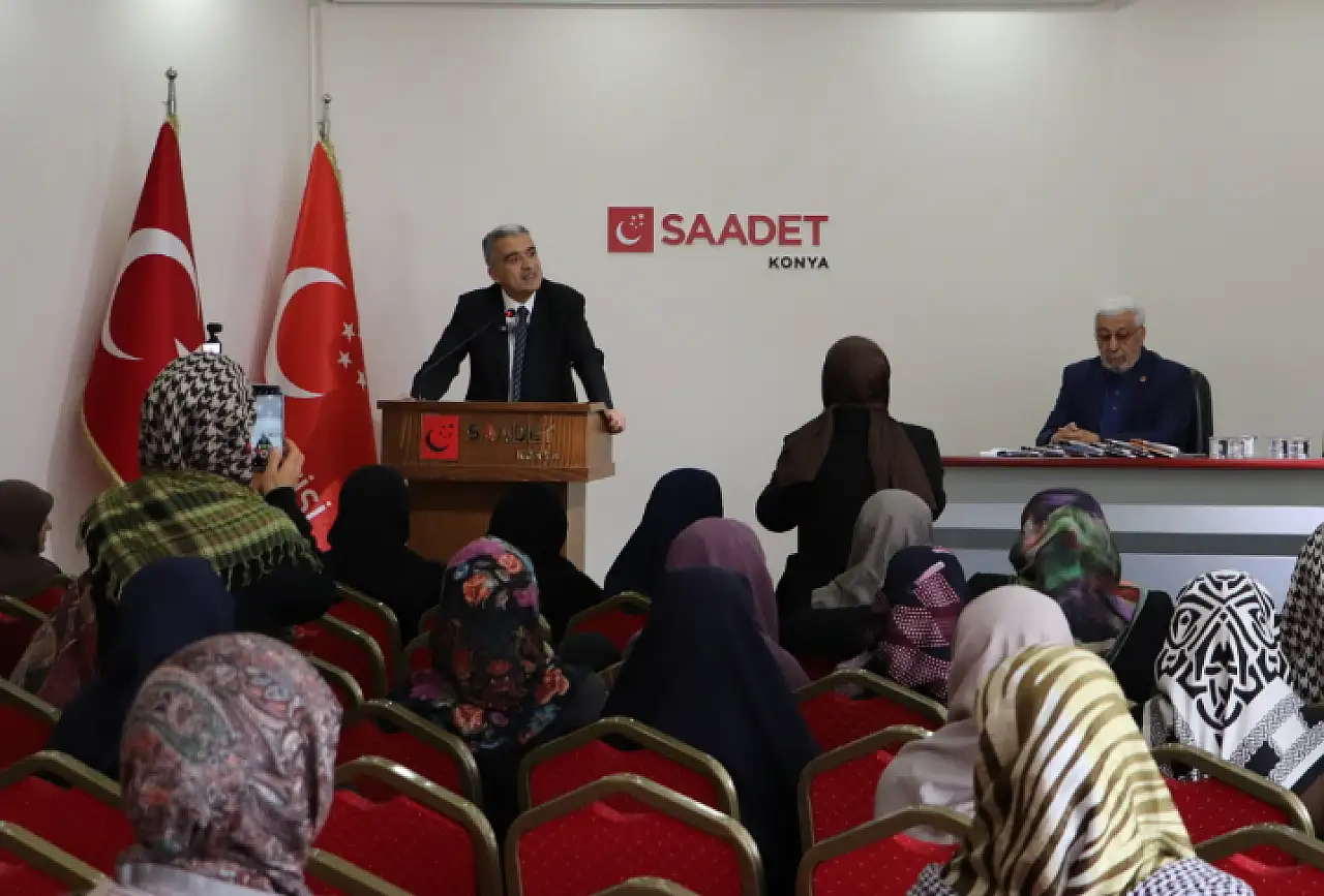 Saadet Partisi Konya İl Başkanı Mehmet Demirel, partisinin Konya Kadın Kolları tarafından düzenlenen Eylül Ayı Divan Toplantısı'na katıldı. Toplantıya yoğun katılım sağlanırken, Demirel konuşmasında ABD Başkanı Donald Trump ve İsrail Başbakanı Binyamin Netanyahu'nun 'Gazze Planı'nı sert sözlerle eleştirdi.