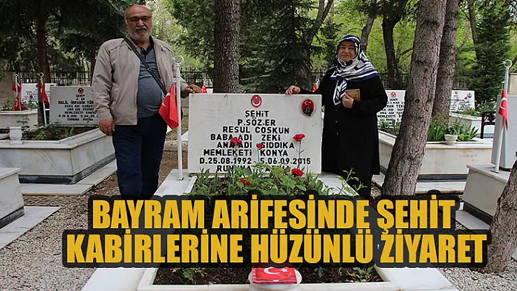 Konya, Aksaray, Afyonkarahisar ve Karaman'da şehit aileleri, Ramazan Bayramı arifesinde şehitliklerdeki yakınlarının kabirlerini ziyaret etti.