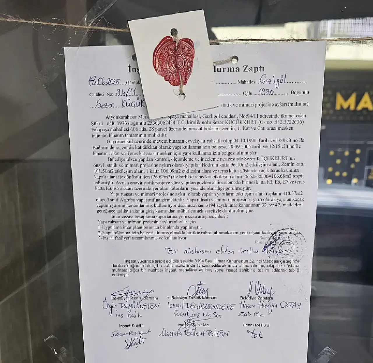 Afyonkarahisar’da yayın yapan Kocatepe Gazetesi’nin aktardığı bilgilere göre, yerel gazetenin belediye ekiplerince mühürlendiği belirtildi. Habere göre, Afyonkarahisar Belediyesi tarafından Kocatepe Gazetesi sahibi Sezer Küçükkurt’a yapılan tebligatta Kocatepe Gazetesi’nin bulunduğu binada “3194 sayılı imar kanununun 32. Ve 42. Maddeleri gereğince tadilatlı alanın giriş kısmından mühürlenmek suretiyle durdurulmuştur. İnşaat yukarıda tespit edildiği şekilde 3194 sayılı İmar Kanununun 32. Maddesi gereğince durdurulduğuna dair iş bu zabıt mahallinde tanzim edilerek imza altına alınmış olup bir nüshası muhtara diğer bir nüshası inşaat mahalline asılmış veya inşaat sahibine teslim edilerek tebliğ edilmiştir” denildi.