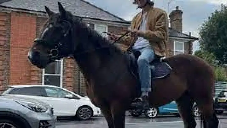 İngiltere'de akaryakıt istasyonlarına yakıt ikmali yapabilecek tanker şoförü eksikliği, ülkede paniğe yol açtı. Uzun araç kuyruğunun olduğu bir istasyona atı ile gelen adam, şarkı söyleyerek mevcut durumla dalga geçti.