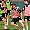 Pas ve top kapma çalışmalarıyla başlayan idman, dar alanda oynanan çift kale maçlarla tamamlandı.