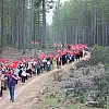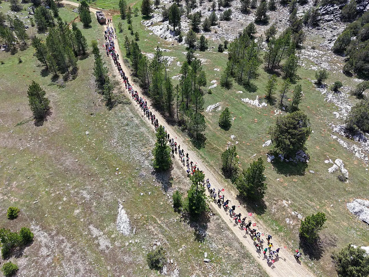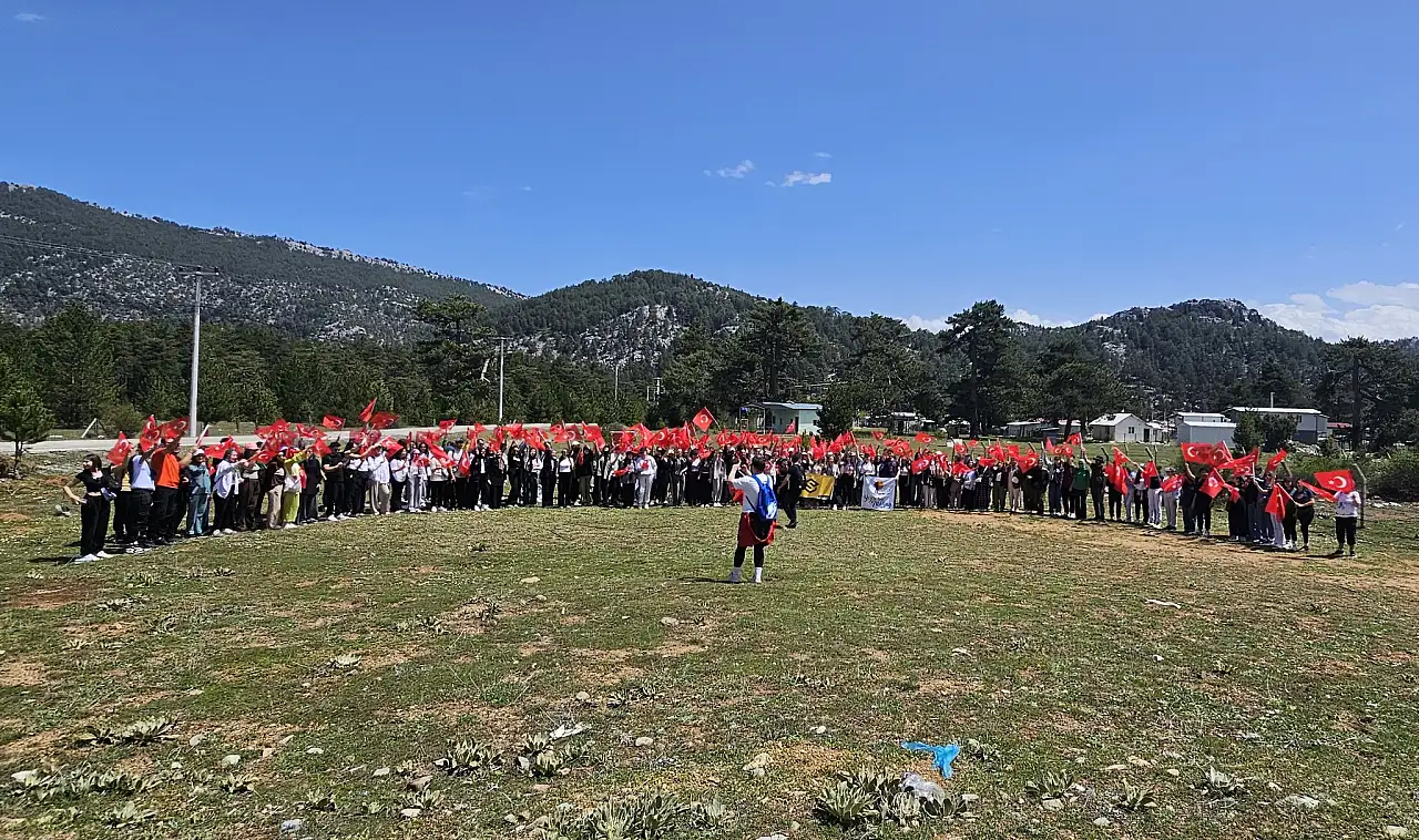 Katılımcılar, ellerinde Türk bayraklarıyla 5 kilometre boyunca ormanlık alanda sedir ağaçları içindeki parkurda yürüyerek çocukların bayram coşkusuna ortak oldu.