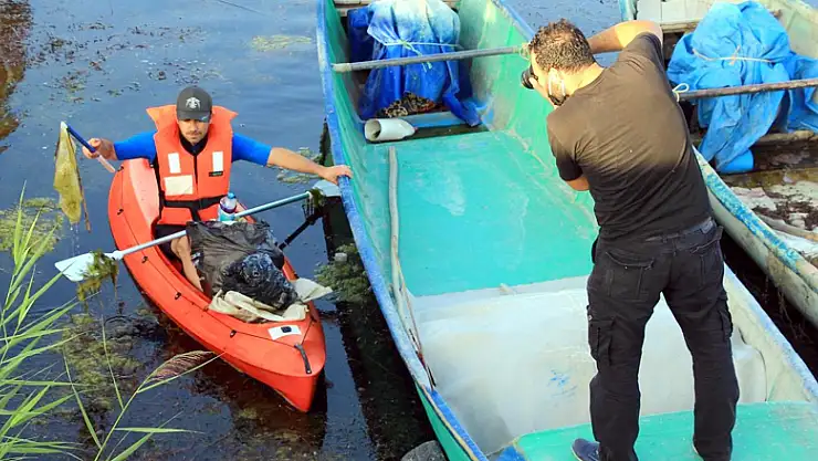 Konya'nın Beyşehir ilçesinde, göl sahilini gönüllü olarak kanoların üzerinde temizleyen sporcuların belirlenen sürede en iyi fotoğraf karesini çekenler para ödülünün sahibi oldu.