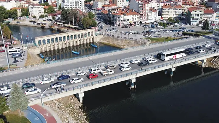 İlçe merkezindeki Eşrefoğlu Köprüsü'nde de trafik akışı zaman zaman durma noktasına geldi, uzun araç kuyrukları oluştu.