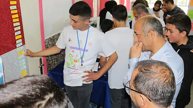 Eşrefoğlu İmam Hatip Ortaokulu'nda düzenlenen fuarda, öğrencilerin yıl içinde hazırladığı 21 farklı proje görücüye çıktı.