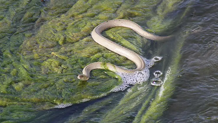 Yaşam sürdükleri Beyşehir Gölü'nden akıntıyla Beyşehir Suğla Apa (BSA) kanalına geçen çok sayıda su yılanı mahsur kaldı.