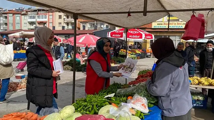 Stantta görev alan Sosyal Hizmet Merkezi Müdürlüğünde görevli kadın sosyal hizmetler uzmanı, psikolog, psikolojik danışmanlar tarafından kadın polis ve kadın zabıta görevlilerinin de eşliğinde pazar yerine alışverişe gelen kadınların 8 Mart Dünya Günü kutlanırken, bilgilendirme broşürleri verilerek çeşitli ikramlarda bulunuldu. Stantta görev alan kadın görevliler, ayrıca pazar yerini de gezerek satış yapan kadınlara tezgahları başında broşürler vererek bilgilendirmeler yaptı.