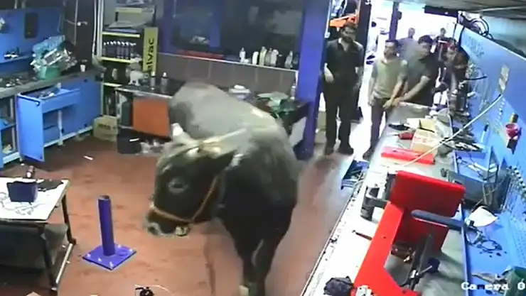 Erzurum'un Yakutiye ilçesinin Sanayi Mahallesi'nde sahiplerinin elinden kaçan boğa, yakalanana kadar heyecan dolu anlar yaşattı. Boğayı yakalamak isteyen bir kişi boynuzlarından tutarak metrelerce sürüklendi. Ancak boğanın inadına fazla dayanamadığı gözlendi. Daha da öfkelenen boğa, otomobil tamirhanesine girdi. İçeride bulunan müşteriler ve çalışanlar, boğayı görünce saklanacak yer aradılar. İşyerinin güvenlik kamerası kayıtlarına göre, boğanın sahipleri geldiğinde dışarı kaçmaya çalıştığı ve yakalandığı görüldü.