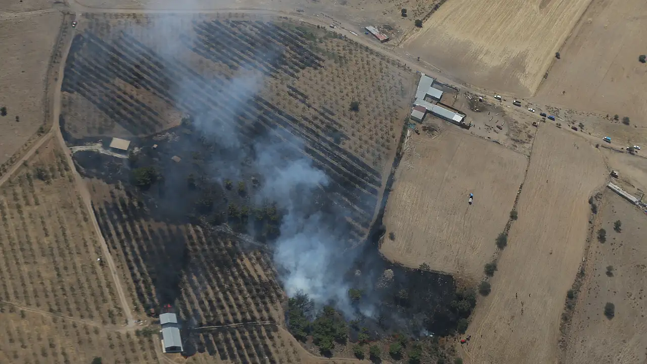 Çanakkale'de zirai alanda çıkan yangına müdahale devam ediyor. Yangın bölgesi, havadan görüntülendi.