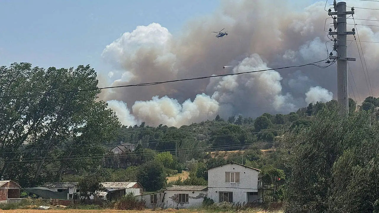 Çanakkale'de tarım arazisinde başlayan yangın ormana sıçradı, Çanakkale Boğazı gemi trafiğine kapatıldı.