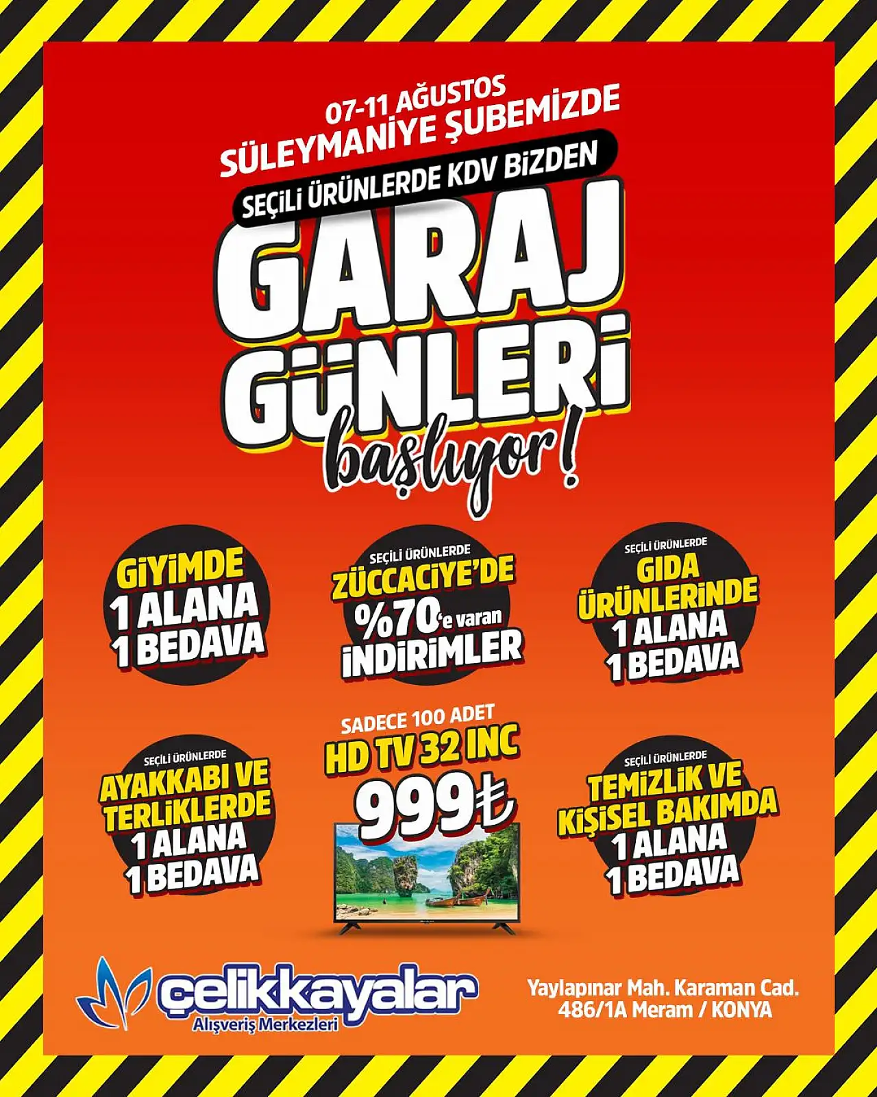 Konya'nın yerel zincir marketlerinden Çelikkayalar, yoğun rağbet gören 'Garaj Günleri' kampanyasını şimdi Süleymaniye şubesine taşıyor!