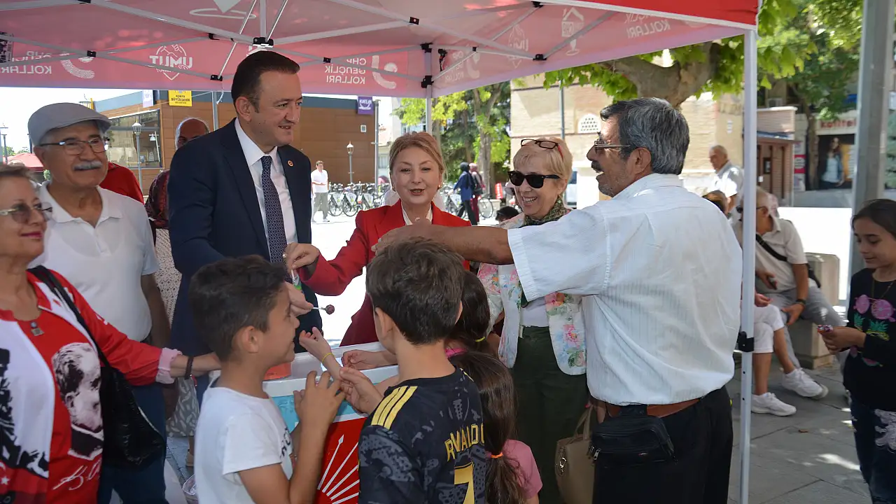 CHP Konya Milletvekili Barış Bektaş ve Meram İlçe Başkanı Ahmet Yiğit birlikte vatandaşların ve çocukların 30 Ağustos Zafer Bayramını kutlayarak, Türk Bayrağı ve Şeker dağıttılar.