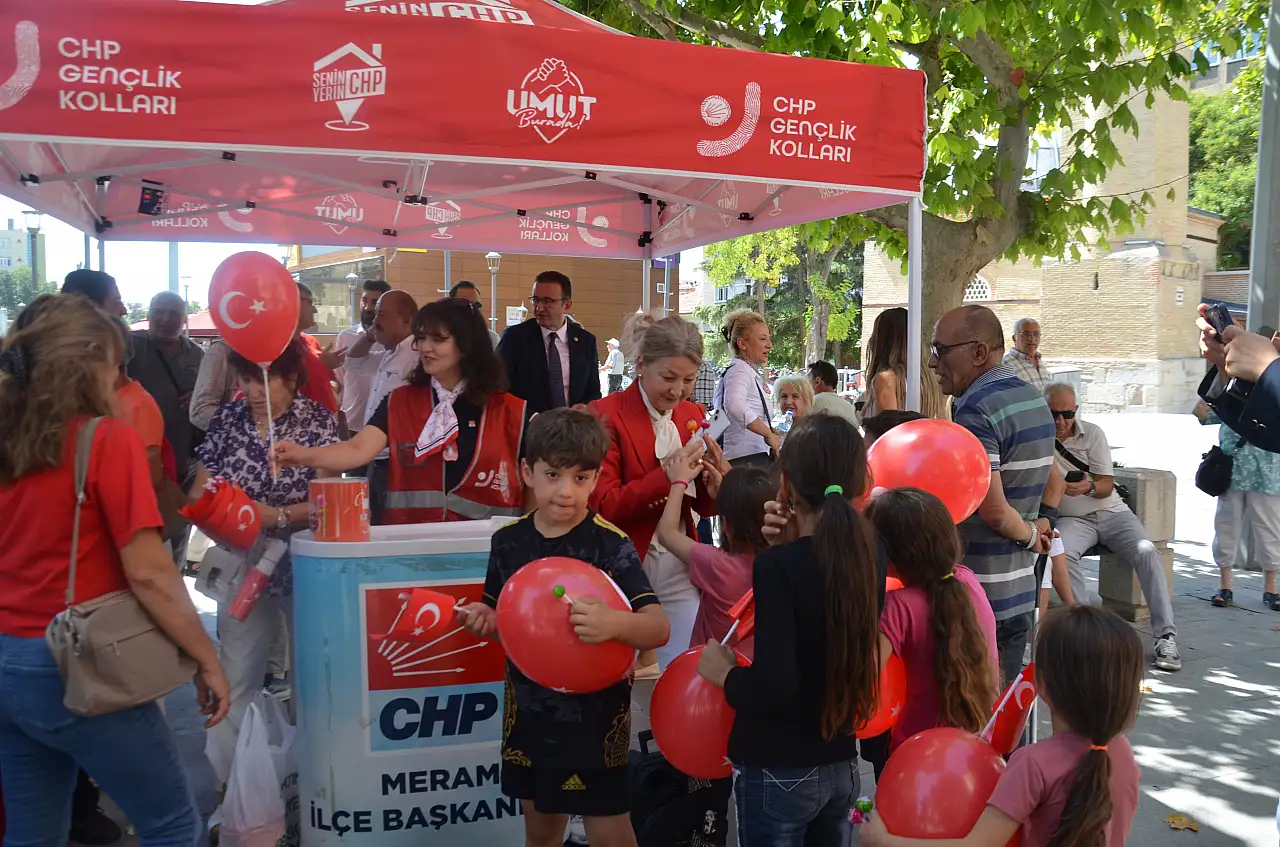 Cumhuriyet Halk Partisi(CHP) Meram İlçe Başkanlığı 30 Ağustos Zafer Bayramı kutlamaları kapsamında, açtığı stantta çocuklara ve vatandaşlara Türk Bayrağı ve şeker dağıtarak bayramı kutladı.
