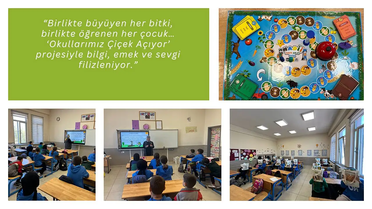 Konya İl Millî Eğitim Müdürlüğü ve Konya Büyükşehir Belediyesinin iş birliğiyle yürütülen 'Okullarımız Çiçek Açıyor' projesi için ilk aşama tamamladı. bu projeyle çocukların üretim süreçlerine hakim olması ve yeni deneyimler kazanmaları amaçlanıyor.