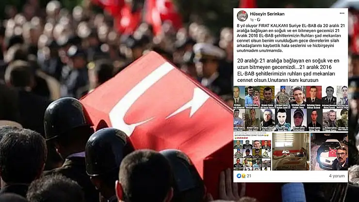 Gazi Mehmet Serinkan kardeşinin şehadet haberi gelmeden bir gün önce sosyal medya hesabından yaptığı paylaşımda şehit olan arkadaşlarını yad etti. Hüseyin Serinkan 21 Aralık'ta yaptığı paylaşımda, “8 yıl oluyor Fırat Kalkanı operasyonu Suriye Elbab’da 20 Aralık’ı 21 Aralık’a bağlayan en soğuk gece ve en bitmeyen gecemiz. 21 Aralık 2016 Elbab şehitlerimizin ruhları şad olsun. Benim vurulduğum gece devrelerim, silah arkadaşlarımı kaybettik. Hala seslerini ve hiçbir şeylerini unutmadım, unutmamda” ifadelerine yer verdi.
