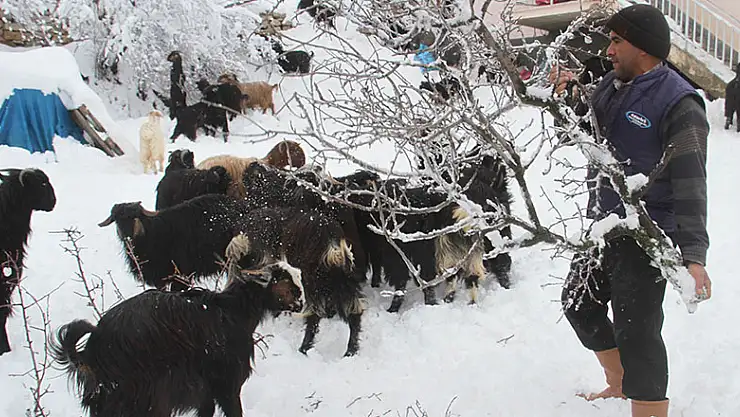 Keçileri bu yüzden kapalı alanından evlerinin önündeki oluğa sulamak için çıkardığını anlatan Ahmet Şimşek, "Bugün dağda çok kar yağdığı için çıkamadık. Hayvanlarımızı oluğumuzda suluyoruz. Kırılan dal parçaları da takviye besin oluyor" dedi.