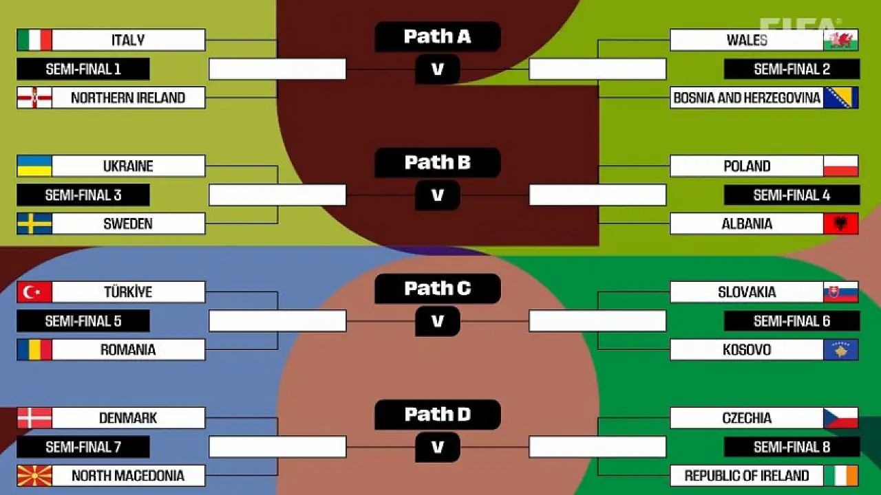FIFA Dünya Kupası Play-Off Turnuvası ve Avrupa Play-Off'u için kura çekimi, FIFA'nın İsviçre'nin Zürih kentindeki merkezinde yapıldı.