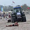 • Dünyaca ünlü sahil, traktörlerle tarla gibi sürülüp sezona hazırlanıyor