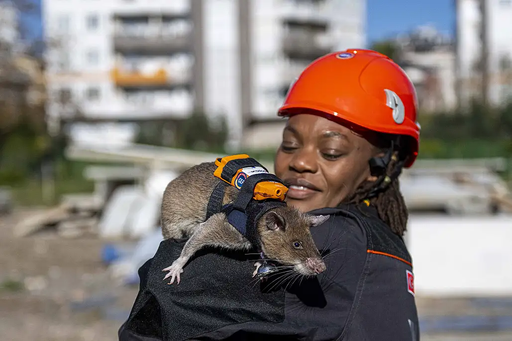 Antalya'da başlatılan dünyada bir ilk proje ile 6 Afrika keseli sıçanı, olası afetlerde enkazda arama kurtarma için eğitildi. Fareler, GPS ve kameralı çantalar ile anlık takip edilip canlı kokusu aldığında sinyal veriyor.