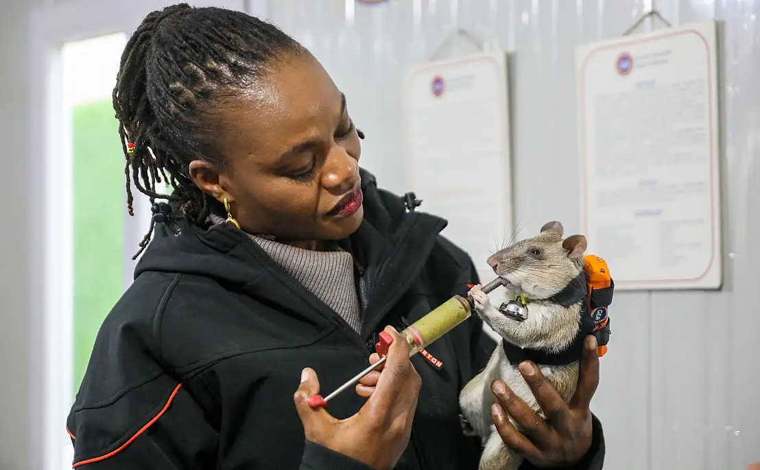 Antalya'da başlatılan dünyada bir ilk proje ile 6 Afrika keseli sıçanı, olası afetlerde enkazda arama kurtarma için eğitildi. Fareler, GPS ve kameralı çantalar ile anlık takip edilip canlı kokusu aldığında sinyal veriyor.