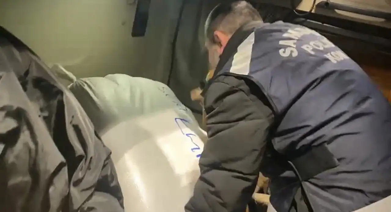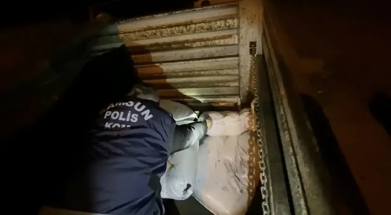 Samsun Emniyet Müdürlüğü Kaçakçılık ve Organize Suçlarla Mücadele (KOM) Şube Müdürlüğü ekiplerinin çalışmasında durdurulan TIR içinde arama yapıldı.