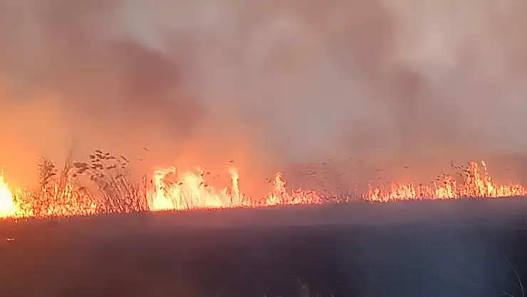 Sazlık alandaki yangında alevler zaman zaman metrelerce yükseğe çıktı