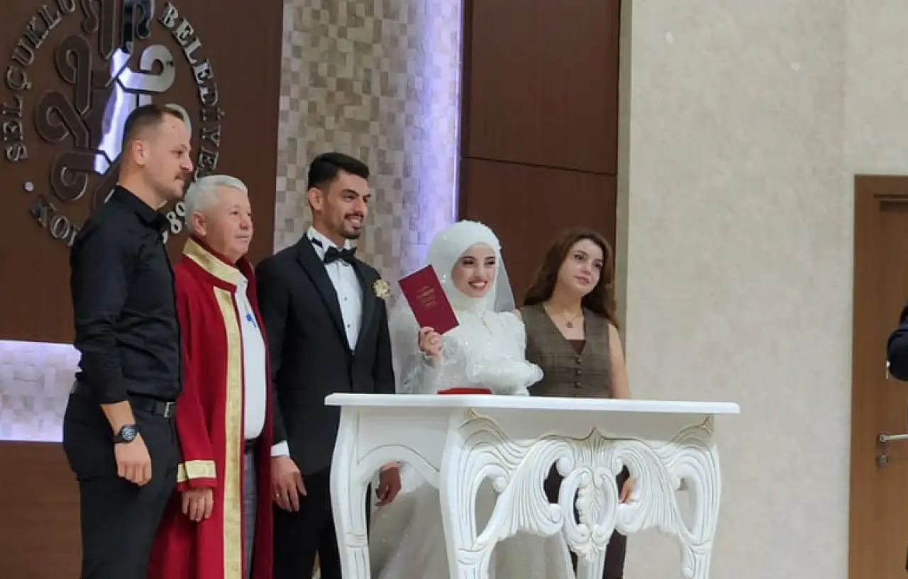 Konya'da Eda Arı ile Haldun Semih Büyükmumcu'nun mutu günü. Genç çift, bir ömür mutluluğa 'evet' dedi.