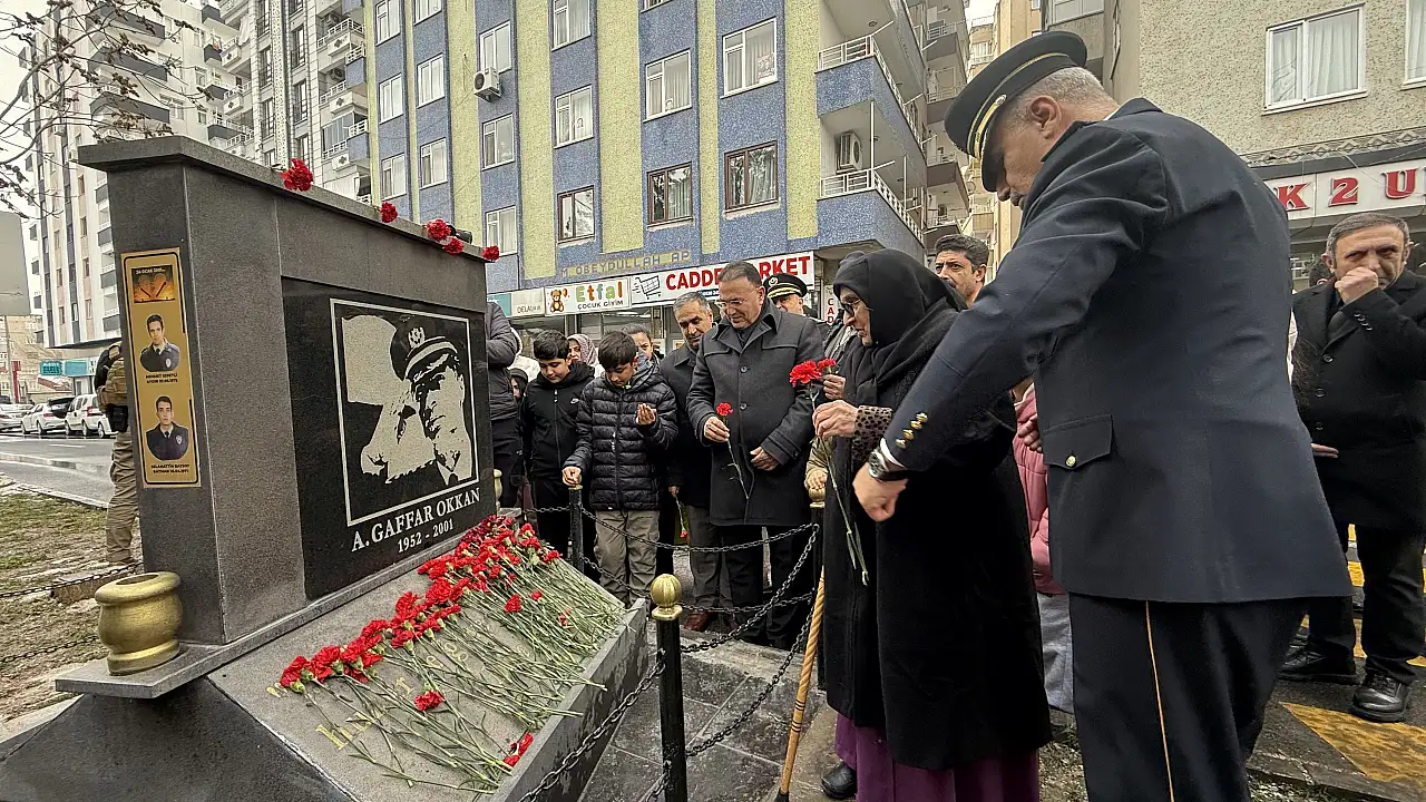 Şehit Emniyet Müdürü Ali Gaffar Okkan ve 5 polis memuru, şehadetlerinin 25'inci yılında Diyarbakır'da vuruldukları noktada dualarla anıldı. Törende karanfiller bırakılırken, Okkan'ın fotoğrafları balkonlara asıldı.