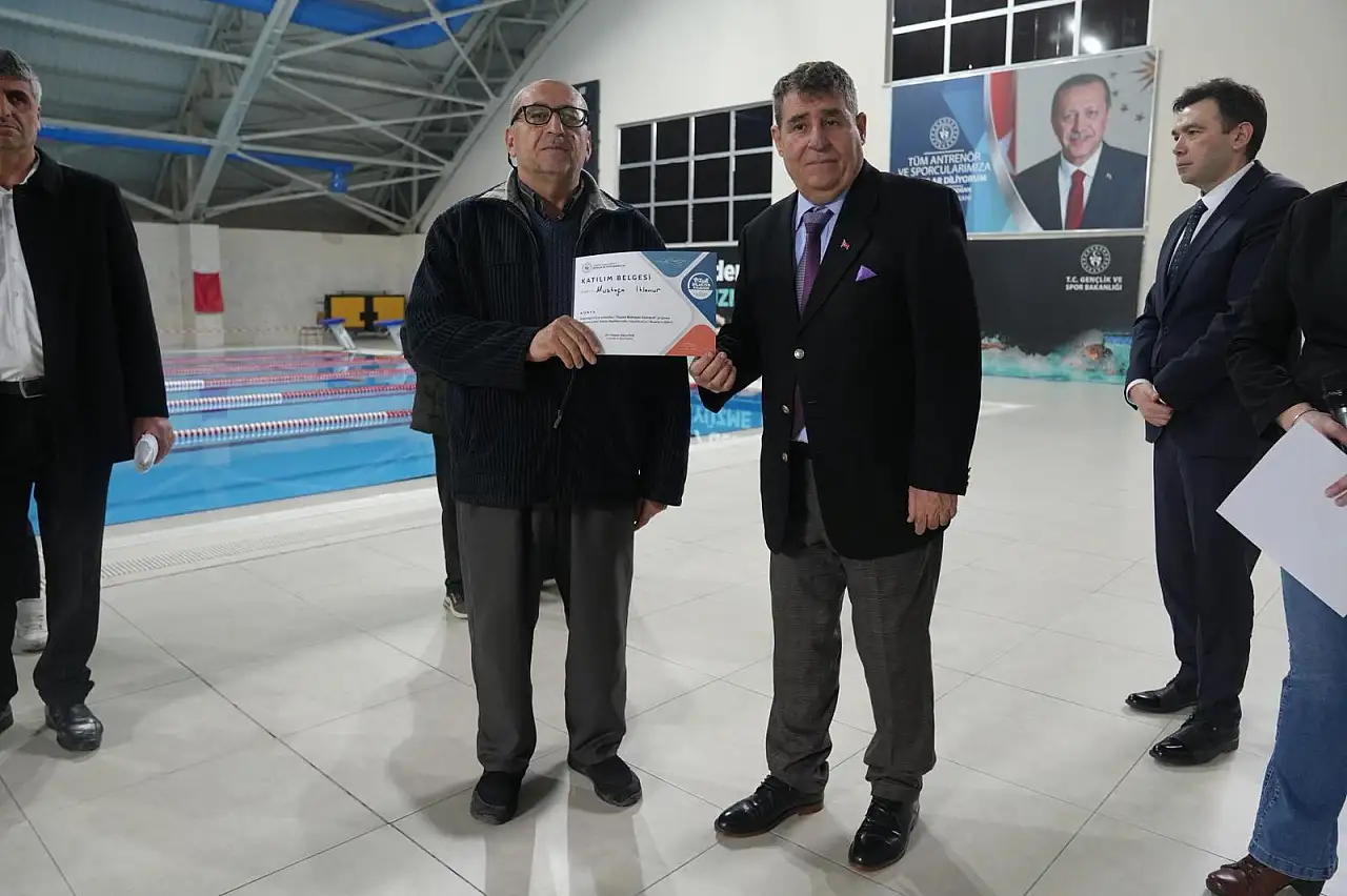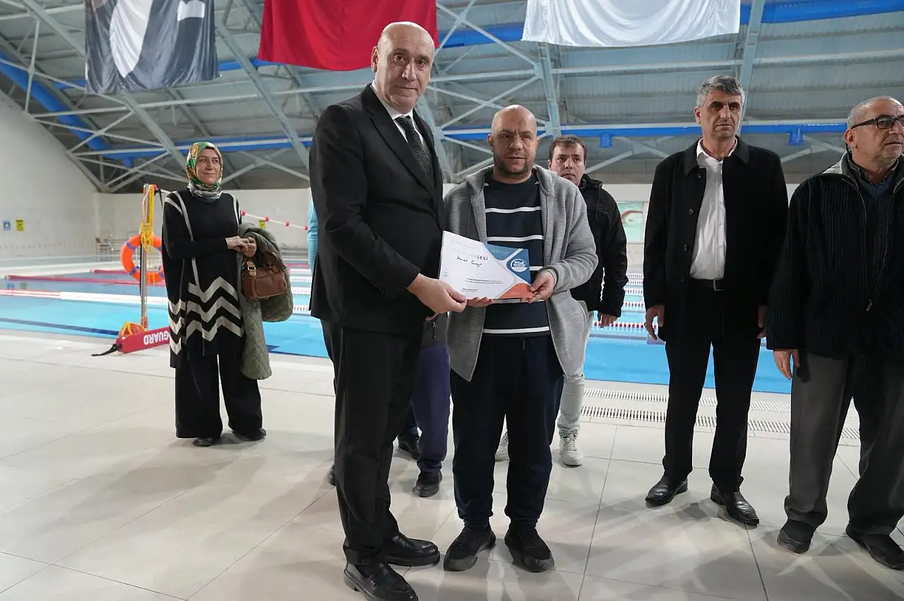 İki ay süren kurs boyunca toplam 16 seans yüzme eğitimi alan engelli bireyler için sertifika töreni düzenlendi. Törene; Selçuklu Kaymakamı Eflatun Can Tortop, Karatay Kaymakamı Cengiz Ayhan, Gençlik ve Spor İl Müdürü Birdal Öztürk, Selçuklu Gençlik ve Spor İlçe Müdürü Murat Önder, Kapalı Yarı Olimpik Yüzme Havuzu Müdürü Abdullah Sevinç, Dünya Görmeyenler Derneği Başkanı Mehmet Ali Şahin, eğitmenler ve çok sayıda engelli birey katıldı.