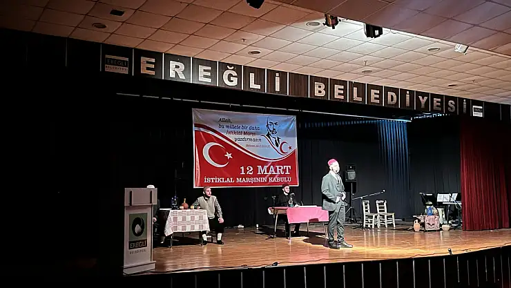 Konya'nın Ereğli ilçesinde yapılan etkinlikte 12 Mart İstiklal Marşı'nın Kabulü ve Mehmet Akif Ersoy'u Anma Günü, kutlandı.