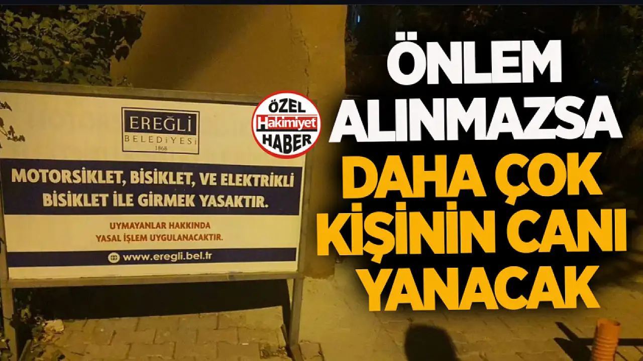 Ereğli'de yürüyüş yolu, uyarı tabelalarına rağmen motosiklet ve bisikletlilerin hız pistine döndü. Mahalleli endişeli: 'Önlem, canlar yanmadan mı alınacak?'
