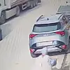 Güvenlik kameralarına yansıyan o anlarda, bir yayanın hızla kaçarak savrulan aracın altında kalmaktan son anda kurtulduğu görüldü.