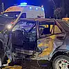 Kayseri'nin Melikgazi ilçesinde yaşanan trafik kazasında, bir otomobil ortadan büküldü.
