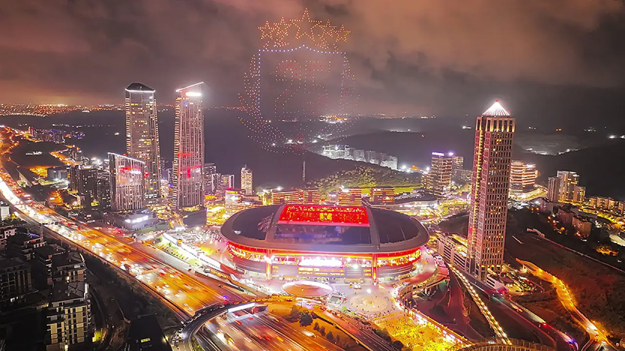Maçın ardından gerçekleştirilen kutlamalarda Galatasaray, 5 yıldızlı logosunu simgeleyen özel bir dron gösterisiyle taraftarına unutulmaz anlar yaşattı. İstanbul’un dört bir yanından getirilen yıldız figürleri, RAMS Park üzerinde birleşerek “5 yıldızlı şampiyon” vurgusu yaptı.