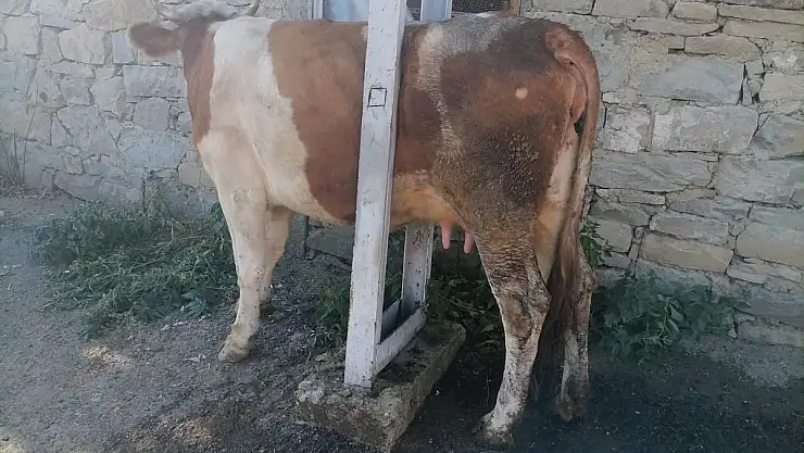 - Garip olay! İnek elektrik direğinin arasında sıkıştı