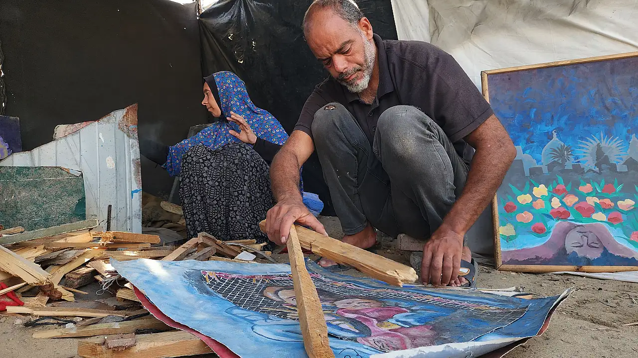 İsrail'in saldırıları ve ablukası altındaki Gazze Şeridi’nin güneyinde yer alan Han Yunus kentine bağlı el-Mevasi bölgesinde yaşayan Filistinli ressam Taha Ebu Gali, yemek pişirebilmek için yıllar içinde yaptığı tablolarını parçalamak zorunda kalıyor.