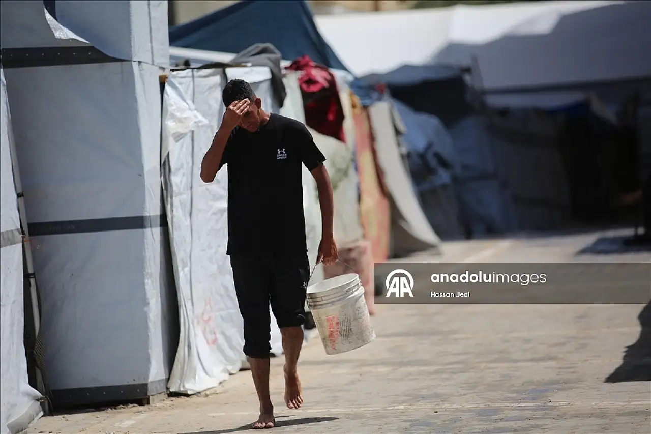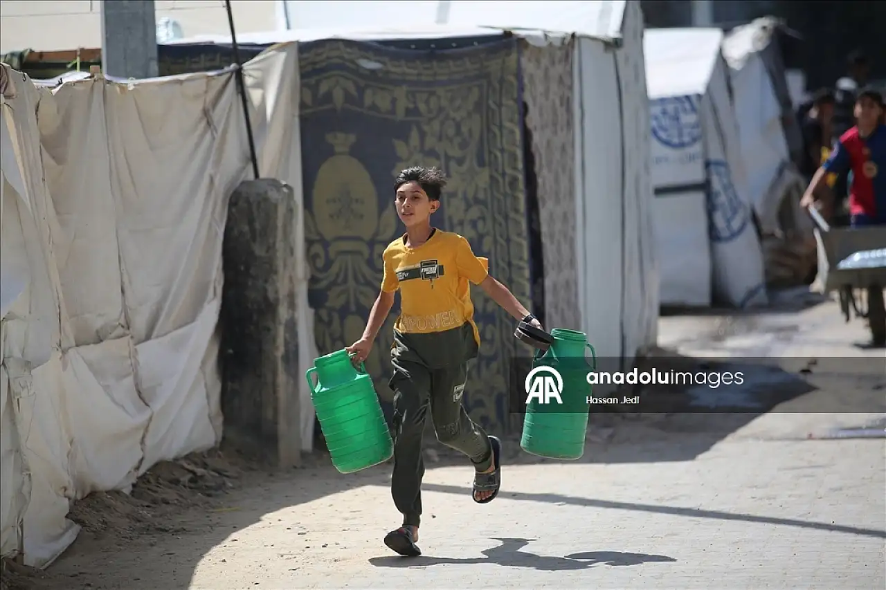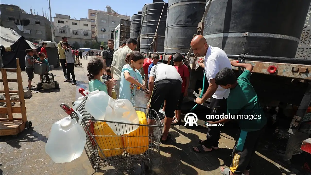 Özellikle su sıkıntısı, bölgedeki yaşamı felç eden en önemli sorunlardan biri. Gazze'nin orta kesiminde yer alan Nuseyrat Mülteci Kampı'ndaki Filistinliler, günlük su ihtiyaçlarını karşılamak için zorlu bir mücadele veriyor. Anadolu Ajansı muhabiri Hassan Jedi'nin gözlemleriyle kaydedilen görüntülerde, kamp sakinlerinin su deposundan sağlanan suyu bidonlara doldurarak hayatta kalmaya çalıştığı görülüyor.
