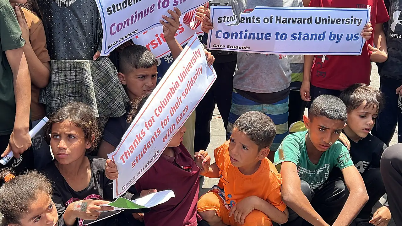 Refah kentinde bulunan bir okulun bahçesinde düzenlenen etkinlikte, çocuklar ABD ve Avrupalı üniversite öğrencilerine Gazze Şeridi'yle dayanışma gösterileri dolayısıyla teşekkür etti. Basın toplantısında konuşan çocuklar, yaşadıkları zorluklara rağmen umutlarını kaybetmediklerini ve dünyanın dört bir yanından gelen desteklerin kendilerine güç verdiğini ifade ettiler.