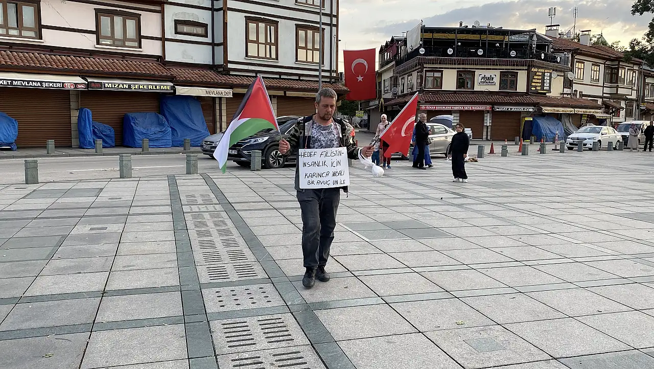Eskişehir’in Tepebaşı ilçesi Çamlıca Mahallesi'nde tuhafiyecilik yapan 43 yaşındaki İrfan Başkaya, İsrail saldırılarına karşı Gazze’ye destek vermek için 5 gün önce tek başına yürüyüş başlattı. İki çocuğunu eşine emanet Başkaya, Babalar Günü'nde Konya’ya ulaştı. Sultan Selim Camisi’nde sabah namazını kılan Başkaya, Konya’dan Adana’ya doğru yola çıkacağını söyledi.