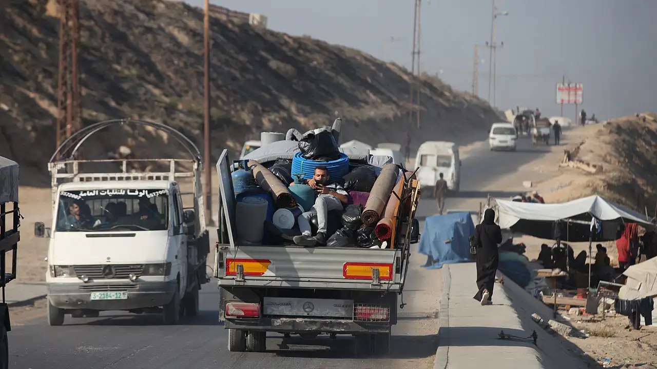 Bölge halkı, yanlarına alabildikleri eşyalarla araçlarıyla er-Reşid Caddesi üzerinden Gazze’nin orta kesimine doğru ilerliyor.