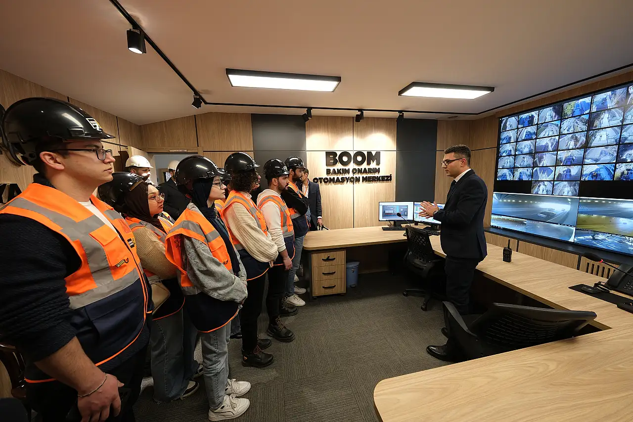 BOOM’un şehirdeki tüm yürüyen merdiven, duba ve bariyerler, ısıtma sistemleri, alt geçitlerindeki drenaj sistemleri, jeneratör ve UPS'lerin ve asansörlerin bakım süreçlerini uzaktan nasıl koordine ettiğini öğrenen öğrenciler, merkezin otomasyon sistemlerine olan ilgilerini dile getirdi.