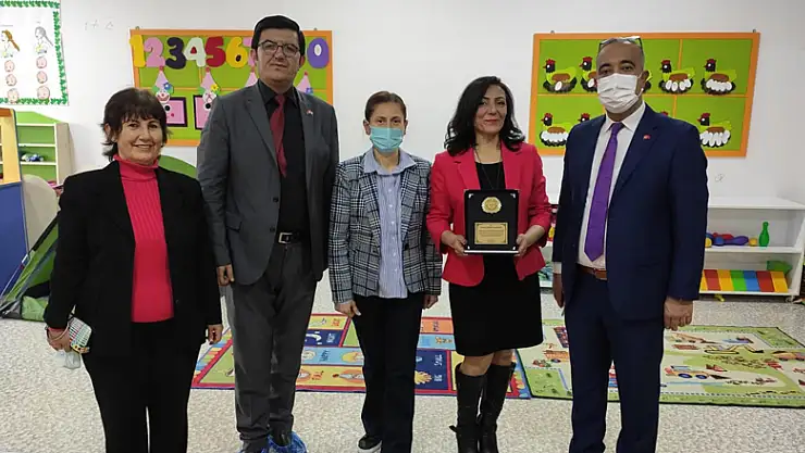 Gönül Gözü Derneği Genel Başkanı Devriş Ahmet Şahin ve kendisine eşlik eden dernek yöneticisi Sevil Pınarbaşı, 24 Kasım Öğretmenler Günü hasebi ile Selçuklu Anaokulu Öğretmeni Fatma Çetin Kabadayı'nın öğretmenler gününü kutlayarak kendisine Engelli Dostu Eğitimci plaketini takdim etti.