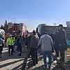 Hafif ticari aracın çarptığı halk otobüsü devrildi! Çok sayıda yaralı var