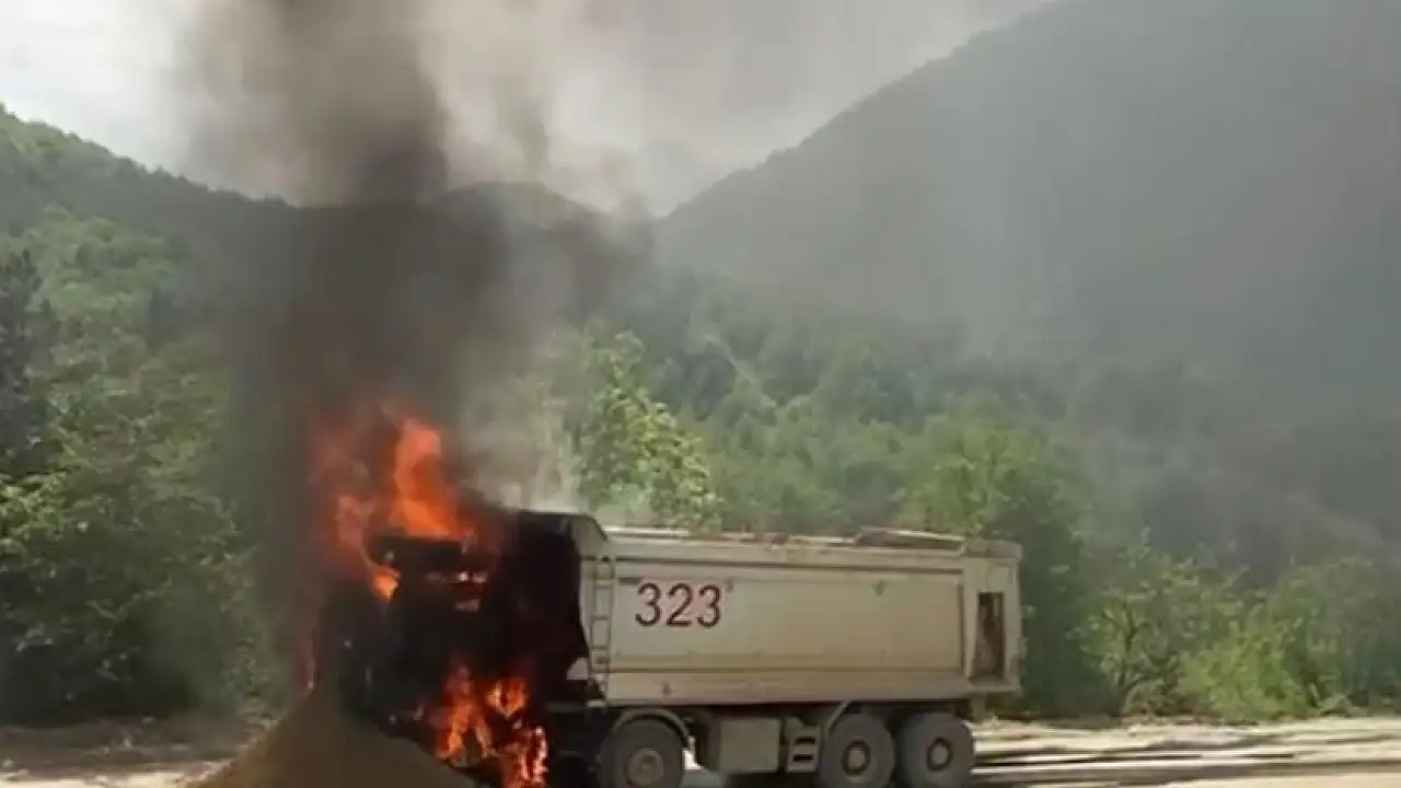 Hafriyat kamyonu alev aldı, kullanılamaz hale geldi