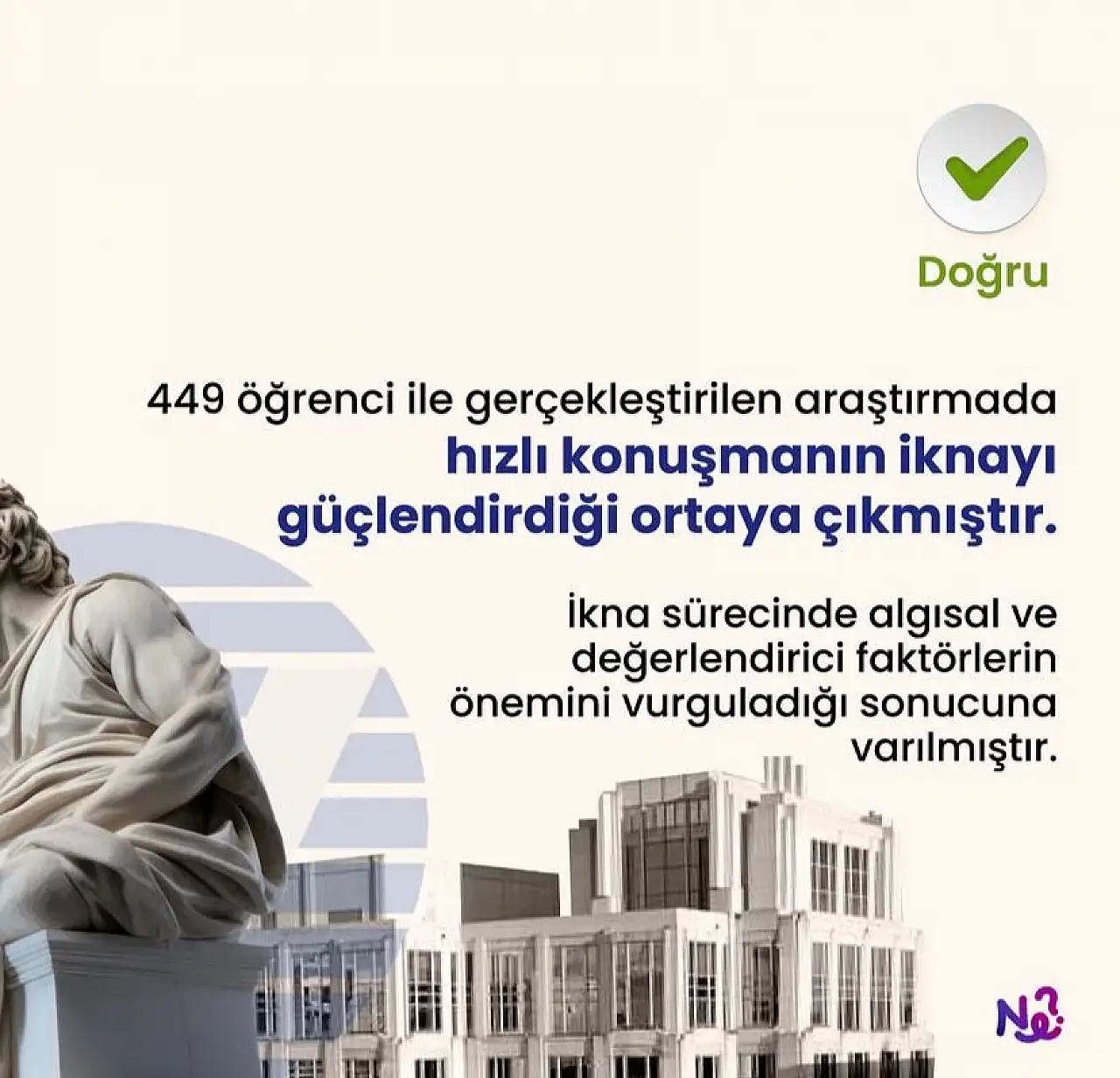 Sosyal medyada yapılan bir paylaşımda, Amerikan Psikolojisi Derneği tarafından gerçekleştirilen 449 öğrenci üzerinden yapılan bir araştırmaya göre, hızlı konuşmanın ikna edici gücünü artırdığı belirtildi.