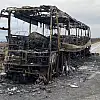 İçinde 23 yolcu bulunan otobüs alev aldı