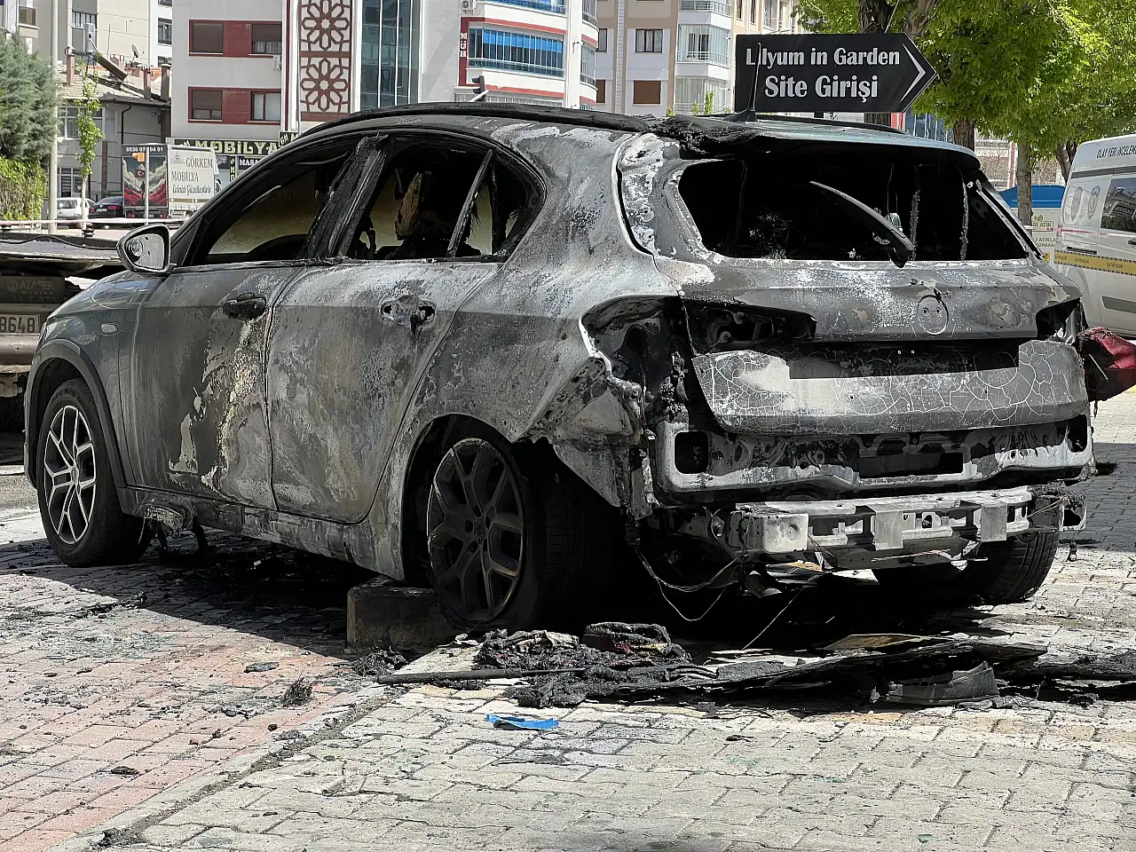 Yangının başlaması ve otomobilin yanması çevrede bulunan bir vatandaşın cep telefonu kamerasına yansıdı. Görüntülerde; otomobilin altından alevlerin çıkması, yangının büyümesi, çevredeki vatandaşların su ile müdahale etmeye çalışması ve otomobilden canlarını kurtaran kardeşlerin yerde oturduğu anlar yer alıyor.